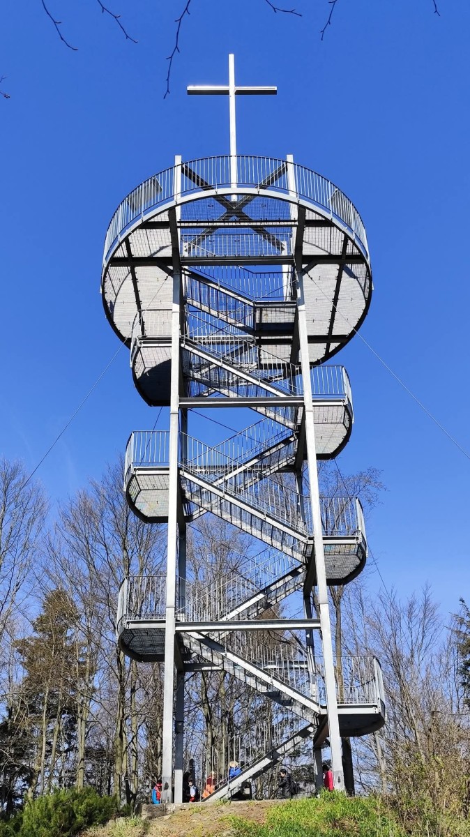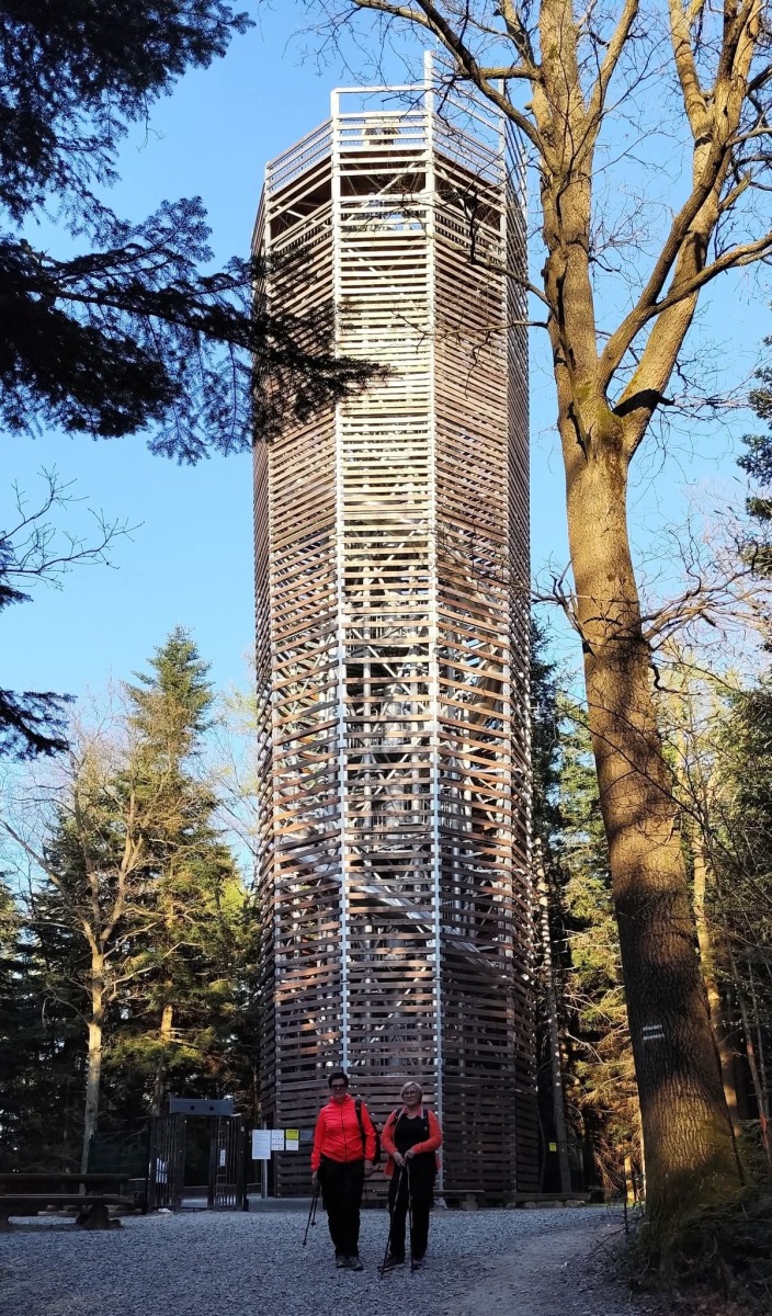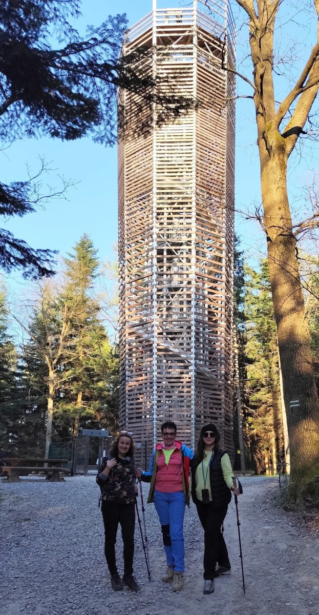 Kolejnym „wysokim” punktem była nowoczesna wieża widokowa na Łysuli. To stosunkowo nowa atrakcja na mapie regionu, która pozwala spojrzeć na okolicę z zupełnie innej perspektywy, oferując doskonały wgląd w topografię Beskidu Niskiego i Gorlic.