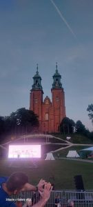 Następnie udaliśmy się do Gniezna – kolebki polskiej państwowości. Tam, pod opieką lokalnego przewodnika – naszego kolegi z PTTK Krystiana Grajczaka – zwiedziliśmy rynek miasta, a następnie udaliśmy się na Wzgórze Lecha, gdzie znajduje się słynna Katedra Gnieźnieńska. Szczególne wrażenie zrobiły zabytkowe Drzwi Gnieźnieńskie przedstawiające sceny z życia św. Wojciecha.